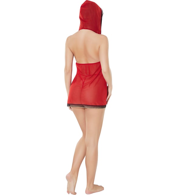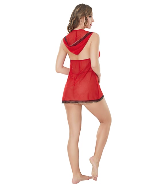 Lily Bianca Kırmızı Kapüşonlu Transparan Erotik Gecelik 999